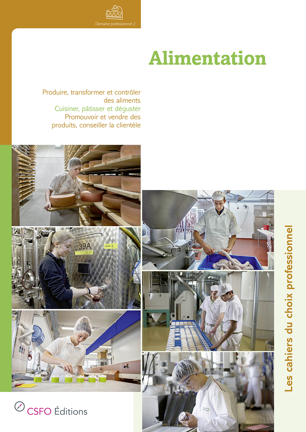 Ce cahier richement illustré présente le secteur de l’alimentation ainsi que ses sous-domaines, en décrivant leurs similitudes et leurs différences, leurs exigences, leurs activités et leur environnement de travail. Le cœur du cahier est constitué d’un catalogue des professions qui présente, sous forme de textes courts et de photos, tous les métiers accessibles par apprentissage ainsi qu’une sélection de professions rattachées à la formation supérieure. Le cahier fournit aussi des renseignements sur le système suisse de formation ainsi que des informations utiles permettant d’aller plus loin dans la découverte des métiers.